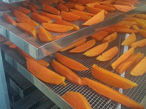 紅薯烘干要準確掌握好紅薯的干度,可用口嚼時軟而綿,這樣硬度為適宜。如果烘干過干,吃時嚼不爛,影響其品質(zhì),但烘干不到位,水分多,容易生霉腐爛。根據(jù)使用我司小型紅薯干烘干機的客戶反饋的情況,紅薯干的烘干溫度不宜超過55℃,要分階段烘干,中間要讓紅薯干回軟。